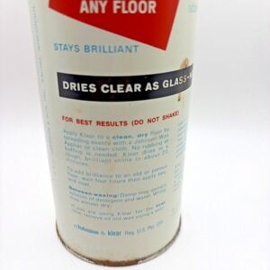 The Vintage Metal Can of Johnson Klear Floor Wax is a classic household cleaning product that promises to keep your floors looking brilliant and not turn yellow. This 19oz full size liquid polish is designed to effectively clean and shine your floors, providing a streak-free finish that will leave your home looking spotless. With the trusted Johnson brand name, you can be sure that this product is reliable and efficient in maintaining the appearance of your floors.