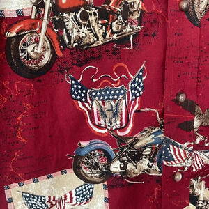 Short Sleeve Red Button Up shirt MOTORCYCLES SIZE large
