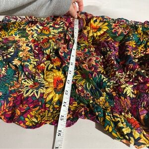 Vibrant strapless top with a floral pattern. Features a mix of bold colors. Ideal for making a statement. Size 3X, in good preowned condition.