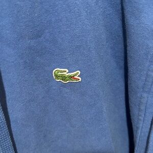Stylish royal blue sweatshirt with full zip. Features iconic Lacoste logo. Ideal for everyday comfort.