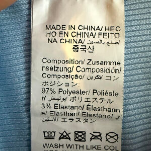 This is a pre-owned SHEIN women's light blue ribbed mock neck tank top, size M (US 6, EU 38). It features a quarter-zip closure at the front. The fabric composition is 97% polyester and 3% elastane. The top measures approximately 17 inches from shoulder to hem and 12 inches across the chest. It weighs 0.31 lbs. The item appears to be in good condition with no visible imperfections