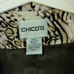 Chico size 1 animal print 100% silk jacket.