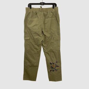 NWOT. Sundance Floral Embroidered Cargo Pant. Lightweight, comfortable relaxed fit. Embroidered motif at the hip pocket, front and back leg. Side cargo pockets. Back elastic waist. Drawstring tie.