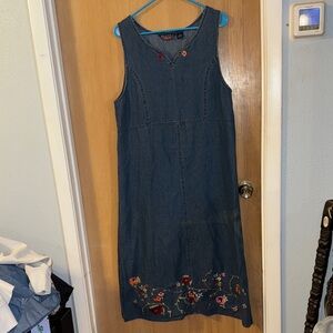 Vintage Embroidered Denim Maxi Dress Jumper Large