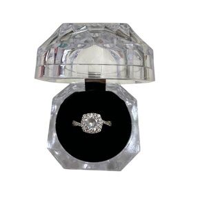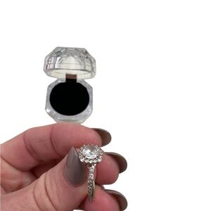 This stunning ring features a dazzling crystal centerpiece, perfect for adding a touch of elegance to any outfit. Approx One and half carat Cubic Zirconia. Size 7