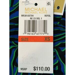 Michael Kors Women’s Blue Unlined Pullover O-Ring Detail Printed Short Sleeve Asymmetrical Neckline Short Party XS Sheath Dress!