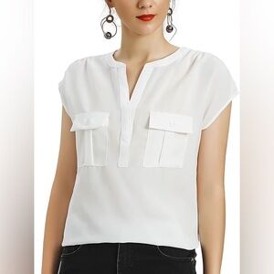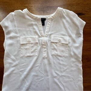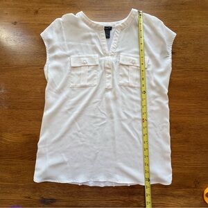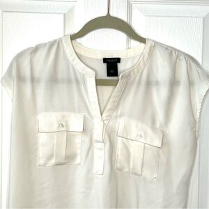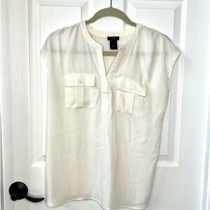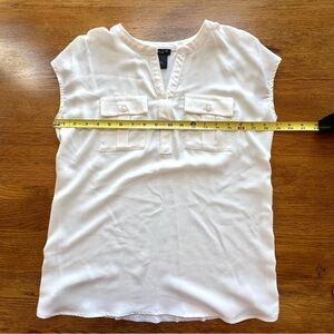⭐️ Ann Taylor Factory Cap Sleeve White Blouse Pockets Size SMALL