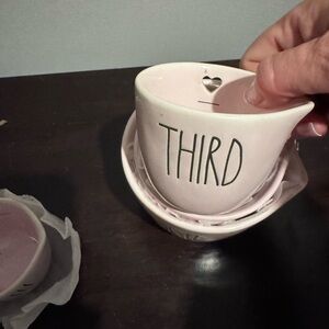 Charming Rae Dunn measuring cup set. One cup, Half, third and quarter cups. Perfect for kitchen use or decor.