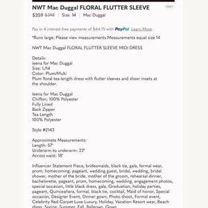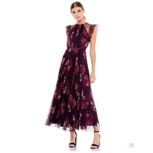 NWT Mac Duggal FLORAL FLUTTER SLEEVE MIDI DRESS