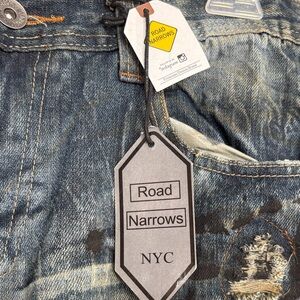Distressed Road Narrows Demin Jeans with Paint Splatter