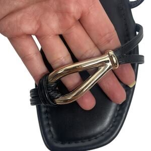 Nine West Tigra Square Toe Strappy Slide Flat Sandal Black Gold Size 7M