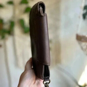 Fossil Brown Quilted Leather Wristlet / Clutch with Snap Closure