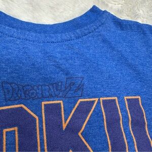 This vibrant blue tee features a dynamic Dragonball Z graphic design on the front and back, featuring Goku. With a classic crew neck and short sleeves, it offers a comfortable fit for everyday wear. Dragonball Z t-shirt in a size 6. Blue in colour with fun Goku graphics on the front and back. Comfortable and casual 60% cotton, 40% polyester In great shape. No stains or flaws.