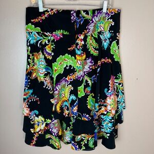 Keywords: Lauren Ralph Lauren, floral skirt, tiered skirt, ruffle skirt, summer skirt, midi skirt, knee-length skirt, women's fashion, designer skirt, bold print, flirty skirt, party skirt, vacation wear