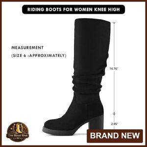 Women's Knee High Boots Chunky Heel Platform Slouchy Stretchy Suede