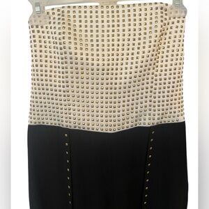 $695 Alice + Olivia Angelica Black Strapless Studded Wide Leg Jumpsuit Size 6