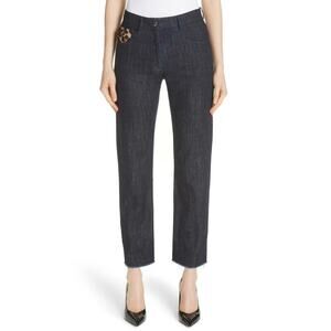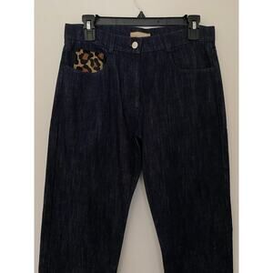 $695 Michael Kors Collection Calf Hair Straight Jean Dark Wash Animal Print EUC