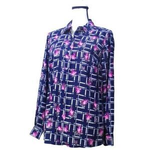 $69.50 Charter Club Women’s Printed Button-up shirt, Intrepid Blue Combo, S
