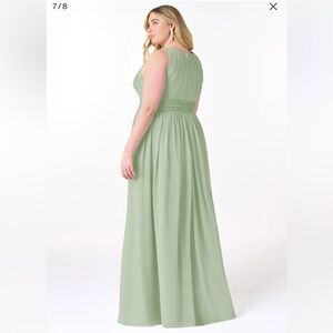 NWT AZAZIE HARPER Dusty Sage A-Line Pleated Chiffon Dress