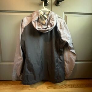 Standard lightweight rain shell with no additional insulation. Pit zips. All zippers are fully functional.
