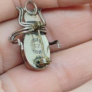 Vtg Iguala EML Mexico 925 Sterling Silver Spider Bug Brooch Pin Black Obsidian