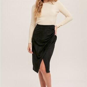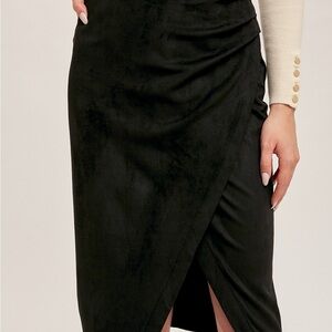 Elegant Black faux wrap Women's Skirt in faux suede