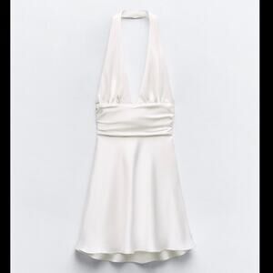 NWT Zara White satin Backless Halter Mini Dress size Small