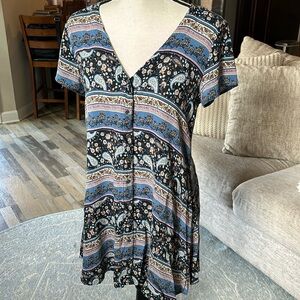 Boho paisley flowy button down vneck dress