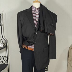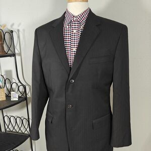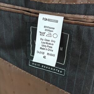 Van Heusen Men's 2PC Suit & Pant Brown Striped Poly Blend Size 42L / 34x32