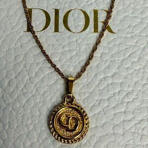 Christian Dior Gold Plated Logo Medallion Pendant Necklace | Vintage Dior