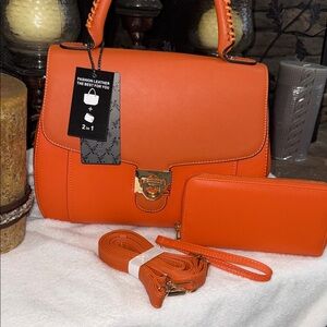 Stylish and vibrant orange women's bag set made from high-quality fashion leather. Perfect for adding a pop of color to any outfit.