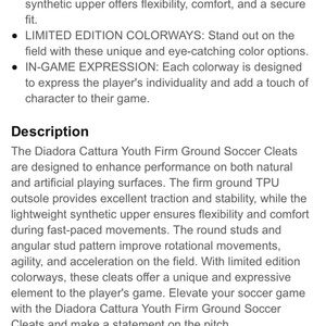 These lightweight cleats are in excellent condition. There are some black scuffs on the inside of the right shoe as you’ll see in the photos.