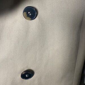 Classic H&M double-breasted trench coat in beige/tan, size 10. Worn only twice. Missing the belt but otherwise complete and still fits beautifully. Light wear in a few areas (shown in photos) but still stylish and functional. Perfect layering piece for transitional weather and timeless wardrobe staple. Smoke-free, pet-free home.