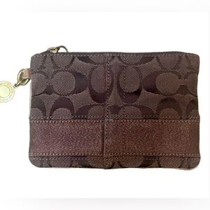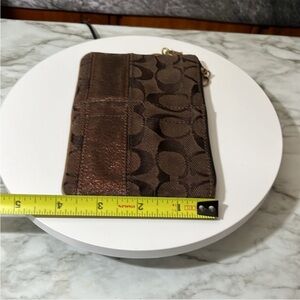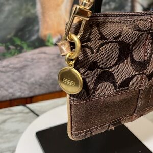 Coach Legacy Signature Wristlet Wallet Clutch with After Market Chain Brown
