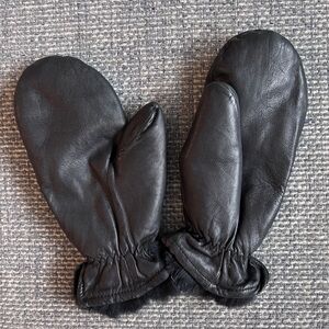 🖤 Grandoe Women’s Black Leather Mittens w/ Rabbit Fur Lining | Size Small ❄️