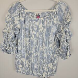 Vince Camuto Linen Blend Off Shoulder Bubble Tie Front Blouse MED Boho Peasant