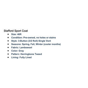 Stafford 46R Gray Herringbone Lambswool Tweed Blazer Sport Coat 3/2 Roll