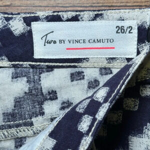 🌻 TWO by VINCE CAMUTO Linen Blend Navy Geometric Print Shorts Women's size 26/2