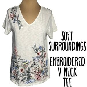 Soft Surroundings embroidered and embellished v neck top size S