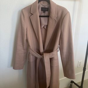 Chic and timeless trench coat. Features a stylish belt and sleek design. Ideal for versatile wear. Such nice heavy fabric, high quality coat. Mauve tan color.