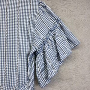 Max Studio Wrap Dress Womens M Blue Gingham Check Cottagecore Ruffle Milkmaid