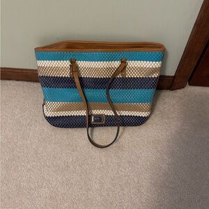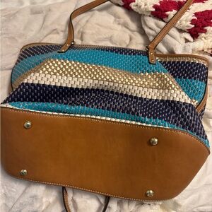 Good used condition! Some minor staining on inside lining (see picture) but have not attempted to clean. Good handbag / mini tote size!