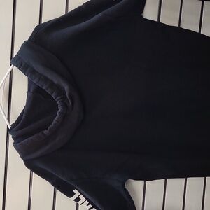 Vans hoodie in black. Features checkered trim. Bold sleeve print. Sweet hoodie for streetwear.