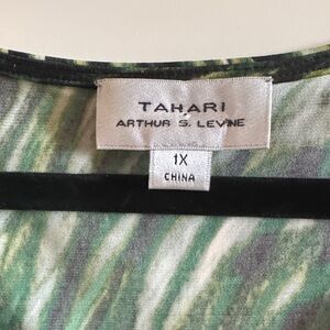 Tahari Green and Black Animal Print Sleeveless Blouse - Size 1X