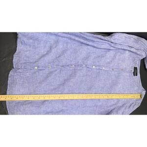 Tahari 100% Linen Blue Lightweight Boho Beach Quiet Luxury Minimalist Long Roll Tab Sleeve Blouse in USA women’s size 1XL, in good preowned condition.