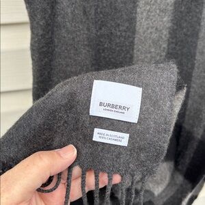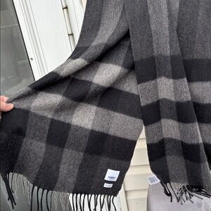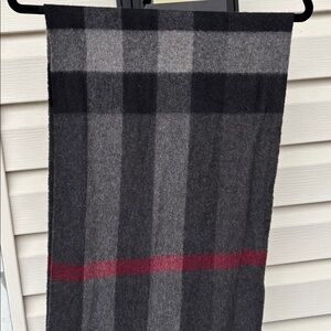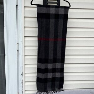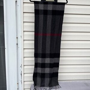 Burberry London England Black Gray Red Check 100% Cashmere Scotland Scarf