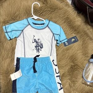 Polo by Ralph Lauren Kids' Aqua and White Rashguard Set