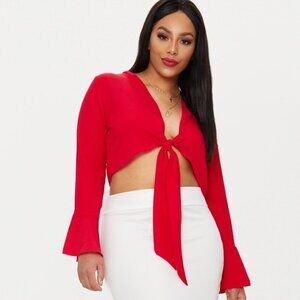This charming red peasant blouse from Brandy Melville features a cropped fit with an open tie-back design. The short flutter sleeves and V-neckline add a feminine touch, making it perfect for pairing with high-waisted jeans or skirts.