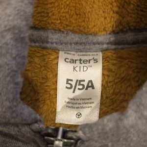 Carter's Cozy Gray Hoodie with Tan Sherpa Lining Size 5