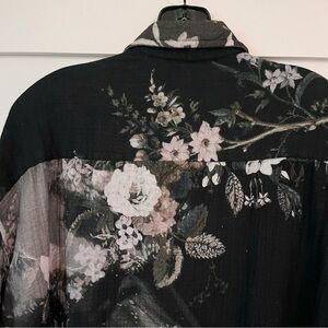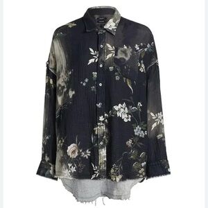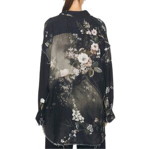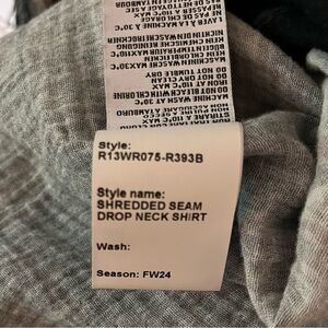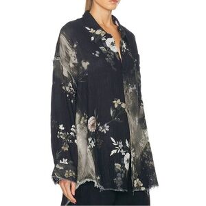R13 Shredded Seam Drop Neck Shirt with tag. Bleached black floral distressed print.
